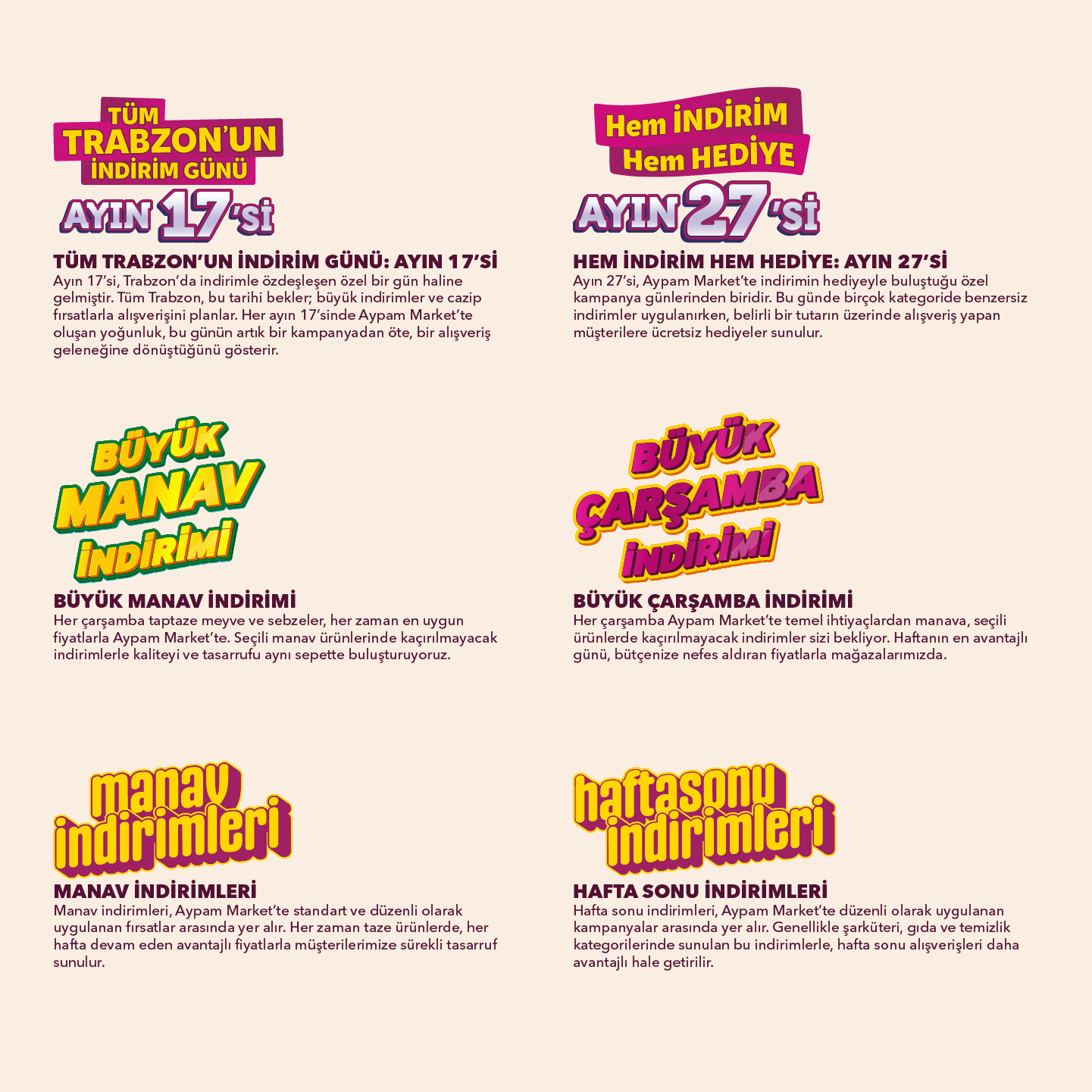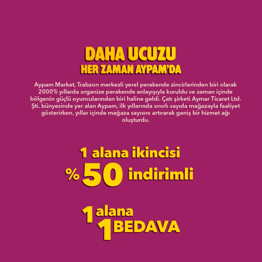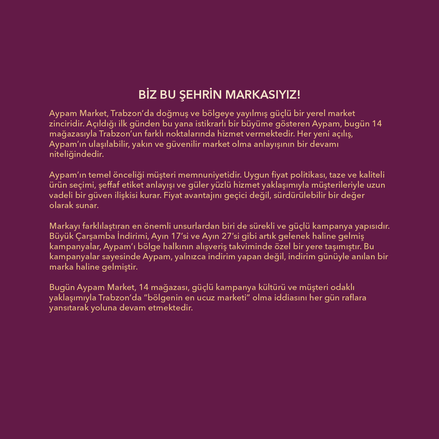 Trabzon’da 90’lardan beri taze ürün ve kaliteli hizmet sunan öncü yerel market. Aypam, Trabzon'da 90'lardan bugüne taze ve kaliteli alışverişin güvenilir adresi. 90'larda Trabzon'da doğan Aypam, taze ürün ve müşteri odaklı hizmetin merkezidir. Trabzon'un köklü marketi Aypam, modern mağazacılık ve taze ürünlerle hizmette. Aypam Market, 90'lardan beri Trabzon'da kaliteli ve taze alışverişin adıdır.